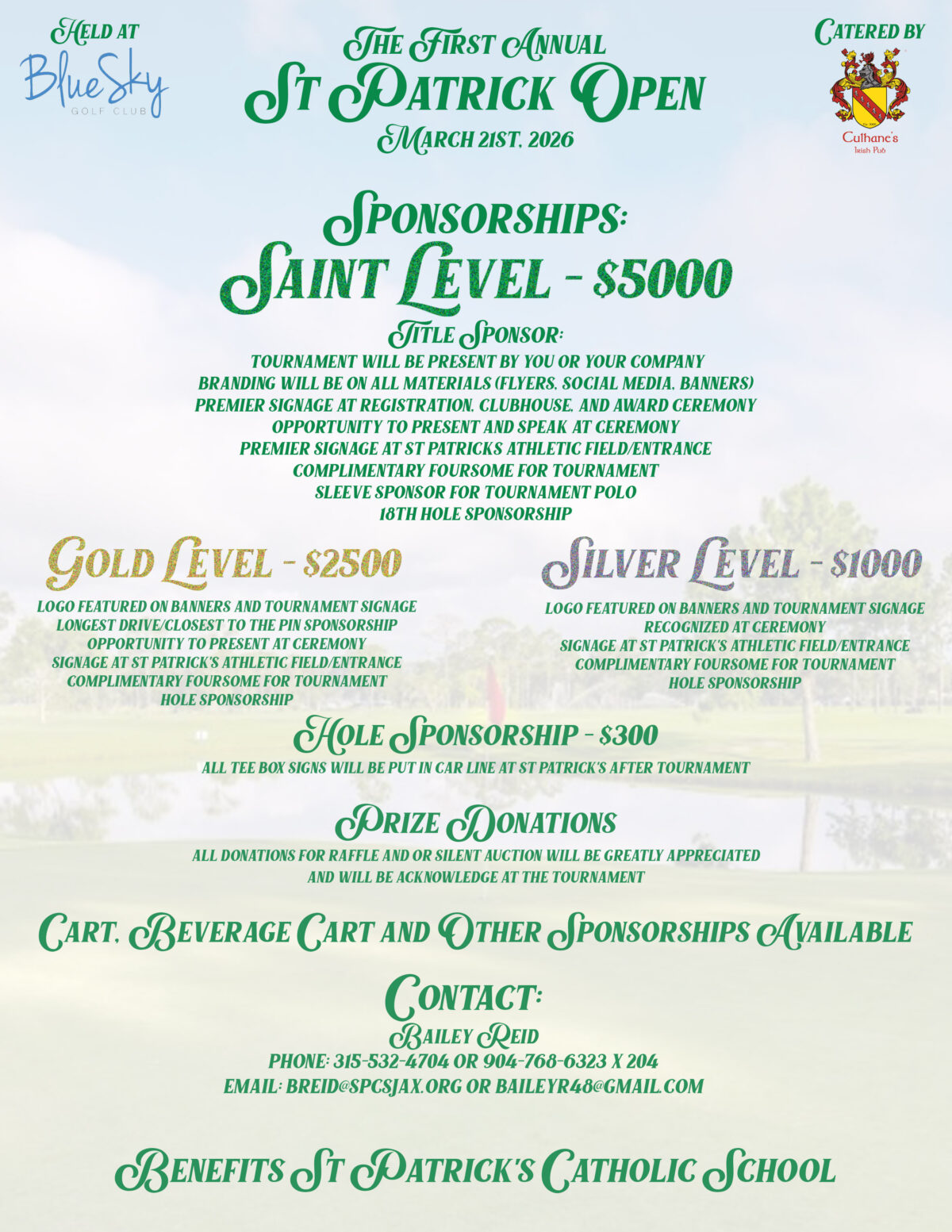 This charity golf tournament will help support our school, students in need, offset the rising costs of athletics, and continue the pursuit of maintaining and improving our facilities and grounds that all of our students use. If you would like to become a sponsor, or need more information please contact: